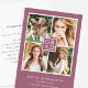 Este moderno chassi roxo e convite para festa de formatura de quatro fotos, branco, é uma maneira elegante e simples de anunciar a próxima festa de formando de 2024. Escolha as fotos pessoais favoritas do formando a serem adicionadas a este convite para grade multifotos da tendência.