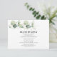 Convite de festas Eucalyptus Foliage Greenery Graduation 2024. Mude completamente a redação deste cartão, adicionando seu ano de graduação, nome e detalhes do local com data para este moderno design Eucalyptus Greenery Watercolor com fundo branco com tipografia das cinzas escuras. Personalize este convite de festa de formatura para 2024 usando nosso botão "Personalizar" acima.
