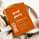 Este simples e moderno convite à festa de formatura apresenta um texto branco minimalista sobre um fundo laranja queimado. Adicione o nome do formando e o ano de classe em tipografia na moda bold e os detalhes na fonte sans serif.