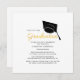 Crie seu próprio Cartão-postal de convite para Festa de formatura moderno e simples com nosso design modelo com um boné formando com letra de script ouro. Perfeito em anunciar aos amigos e à família sobre o seu formando iminente 2025
