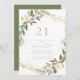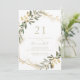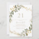 Este convite de festas de aniversário de 21 anos de queda de ouro geométrico é perfeito para um evento moderno. A design apresenta uma bela estrutura geométrica dourada com folhas verdes elegantes.
