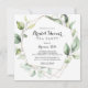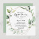 Este convite de festas geométrico elegante de chá de panela de ouro é perfeito para um simples chá de casamento. O design apresenta folhas de eucalipto verde botânico pintadas manualmente, enfeitando uma armação geométrica dourada.