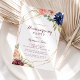Este convite de festas geométrico de dourado é perfeito para uma família simples e amigos, uma nova celebração de lugares. O design apresenta uma aquarela desenhada à mão, púrpura, marinho, pincel, burgundy, flores marinhos, folhas verdes e douradas que adornam uma elegante moldura geométrica.
