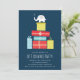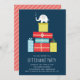 Este é um convite da festa natalícia da troca do presente do elefante branco que caracteriza presentes e ilustração do elefante.