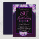 Um convite de festas de janto de aniversário floral, roxo e cor-de-rosa.
