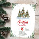 Convite de festas Jante de Natal de Cor Verde Moderna. Os recursos enxugaram verde, árvores de natal de aquarela. Perfeito por adicionar um toque da natureza ao seu evento sazonal. Este convite pode ser facilmente personalizado com os detalhes do evento.