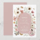 Inspirada pela adorada personagem de conto de fadas "Thumbelina", uma doce fada toma palco central neste convite. Com suas asas delicadas e sua pequena armação, ela captura a essência da inocência e da maravilha que define a infância. A bela exibição floral de flores silvestres boho em tons suaves e moídos de blush, bege e mostarda, ao lado de borboletas graciosas e abelhas ocupadas adiciona um toque de encanto, representando alegria, liberdade e a beleza da natureza.