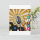 design para uma festa de karaokê com um microfone em um fundo colorido. Este design parece realmente eficaz nestes Convites