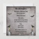 O partido engraçado, bonito, assustador e assustador, gótico do Dia das Bruxas convida para miúdos, família e adultos com um monstro de esqueleto lunático adorável com um corvo preto empoleirado em sua cabeça. Há uma aranha que pendura ao lado dele e dos bastões que voam ao redor. O fundo é um damasco preto elegante do grunge do vintage. Note por favor: Todos os produtos no Web site de Zazzle são imprimidos - TODOS OS produtos têm imagens impressas do plano. Convites assustadores, à moda do divertimento para miúdos, família e adultos. Todo o texto é inteiramente customizável serir suas necessidades - lotes das pias batismais & das cores de escolher de. Alguns elementos felizes dos monstro dos beecreations http://beecreation1.blogspot.com e www.thevectorart.com. Estes convites bonitos são ilustrados em ambos os lados. Se você precisa algum auxílio que personaliza seu produto me contacta por favor através de minha loja e eu estarei feliz ajudar.