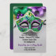 Máscara Mardi Gras com sequências roxas e verdes com miçangas e penas. Todo o texto pode ser alterado.