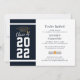 Adicione seu ano de graduação, nome e detalhes do local com data a este marinho azul e branco moderno com convite para festa de formatura da tipografia usando nosso botão "Personalizar" acima. Convites simples de festa de formatura com rolagem e boné de formatura com cartazes modernos.