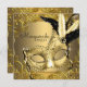 Convite de festas preto e mascarada de ouro com uma máscara elegante de penas pretas e douradas sobre um belo fundo preto e rolo dourado. Este belo e elegante convite de festas preto e ouro é facilmente personalizado para o seu evento adicionando detalhes do evento, estilo de fonte, tamanho de fonte e cor e texto. Esta é uma design impressa sem penas reais, pérolas, joias, brilho, etc.