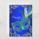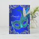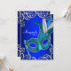 Máscara de pena azul-lacrimogêneo azul-real e convite de festas azul-lacrimogênio. Este elegante convite de festas azul-mascarada é facilmente personalizado para o seu evento, simplesmente escolhendo o botão "Personalizar!" para começar a adicionar os detalhes do evento, estilo da fonte, tamanho da fonte e cor e texto.