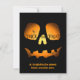 Uma silhueta de um Jack O'Lantern enfrenta grupos um humor delével para este convite de festas assustador do Dia das Bruxas. Os olhos, o nariz e a boca são cortados de um fundo preto de modo que a incandescência alaranjada interna esteja para fora. Duas aranhas pegaram a residência para dentro. As palavras "doçura ou travessura" são cortadas nos olhos e no nariz. O reverso preto revela a informação do partido junto com uma aranha de oscilação e outro Jack cortado O'Lantern enfrenta. Disponível com produtos de harmonização.