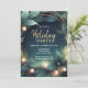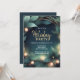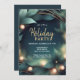 Convite para festas corporativas modernas. O design apresenta uma coroa elegante com luzes em um fundo verde escuro Use as ferramentas de design para personalizar o texto, a fonte e as cores e para adicionar seu logotipo. Também disponível como download digital para versões.