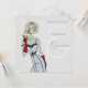 Uma mulher loira pintada manualmente pega um modelo vestindo uma saia preta e branca que se encaixava na forma e com luvas longas vermelhas marcadas segurando um martini em uma na moda, coquetel e Convite de festas de conversação inspirados em prata. Este convite é sexy, elegante e pronto para você se personalizar!
