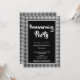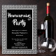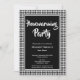 Um moderno convite de festas preto-e-branco de limpeza de casa, com uma ousada borda de diamante preto-e-branco.