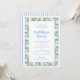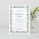 Este eterno de Natal ou Feriados de design apresenta uma borda de água em verde de inverno com bordos azuis e brancos e elementos de chinoiserie, todos originalmente pintados por mim antes de serem digitalizados e organizados digitalmente. O verso é fino, com listras azuis e brancas. Mostrado aqui para uma festa de Datas de Férias, mas também pode ser usado para um chá de casamento, etc, pois todos os campos de texto podem ser personalizados de acordo com suas necessidades