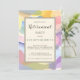 Procurando adicionar um toque de elegância moderna à sua celebração de aposentadoria? O nosso Convite de festas de Primavera de Aposentadoria de Pastel moderno é exatamente o que você precisa! Apresentando a arte pastel de cor d'água abstrato na frente, este convite define o tom para um evento na moda e sofisticado. A parte de trás é totalmente personalizável, permitindo que você adicione uma foto pessoal e uma mensagem sincera que captura a essência deste marco especial. Celebrar a jornada, honrar as conquistas e dar as boas vindas às novas aventuras com um convite que fala sobre a beleza dos novos começos. Torne a sua festa de aposentadoria inesquecível - personalize e faça seus convites hoje mesmo!