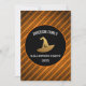 Convite personalizado do Partido das Bruxas Modernas com Stripes de Folha Laranja e Negra e um Chapéu de Bruxas de Ouro Assustador.Os detalhes do Partido das Bruxas Assustadoras e Assustadoras podem ser personalizados na frente e no verso do cartão. Entre em contato com o designer para obter itens adicionais correspondentes.