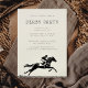 Convite de festas Moderno da Corrida de Cavalo Derby com uma fotografia do estilo Vintage de um cavalo de corrida e um padrão riscado nas costas. Todos os elementos de texto podem ser alterados para que este design possa ser usado para outros eventos também: convite de casamento equestre clássico, festa de aniversário de corridas de cavalos, abertura de celeiro e muito mais. As cores de fundo e texto podem ser alteradas com a ferramenta design!