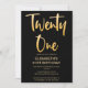 Introduzir um novo fundo preto simples, elegante, convite de festas aniversário de 21 anos, com o texto dourado da tipografia escrita à mão "vinte e um". Personalize esta placa de modelo, adicionando as informações de sua própria parte.