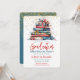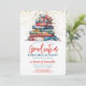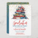Um belo convite festa de formatura. Este fabuloso convite apresenta uma pilha de livros e fitas sobre um fundo de confete dourado. Fácil de personalizar com sua própria casa aberta ou outros detalhes de festa de formatura.