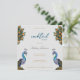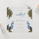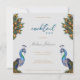 Com as suas penas brilhantes e a magnífica plumagem, este elegante pavão representa força e confiança com o perfeito equilíbrio de delicada mas marcante compostura. Convide convidados para o seu Partido Cocktail com este convite elegante e formal e elegante para o pavão! Completamente personalizável! Artesanato original pintado à mão em aquarela.