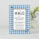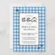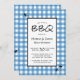 Convide seus convidados para sua festa de piquenique de CHURRASCO no quintal com este convite clássico com um padrão de verificação de gingham azul e branco com formigas piquenique.
