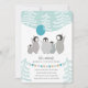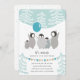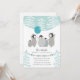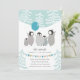 Convite de aniversário de pinguim de inverno em pasta mole, pasta azul e pastel de ouro desenhados por Shelby Allison