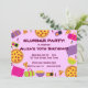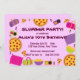 Este convite de festas de canalização apresenta bolsas adormecidas, travesseiros, pizza e pipoca e texto personalizável.