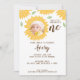 Simples e rústico, este design de Convite de festas de Foto Girassol do País é a forma perfeita de convidar amigos e família para a primeira celebração de festa de aniversário do seu bebê. Apresenta um padrão de girassol amarelo, verde e marrom no verso. Substitua a imagem do bebê pela fotografia do seu próprio filho e mude qualquer tipografia marrom para o ajustado das suas necessidades de planeamento do partido.