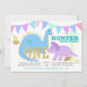 Brontossauro bolinhas e triceratops roxos, adorável dinossauro teve a primeira festa de aniversário com revestimento decorativo de bandeira pastel e sotaque dourado. O primeiro convite de aniversário do bebê com dinossauros fofos para rapazes ou raparigas.