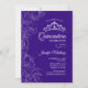 Convite de aniversário de Quinceanera Floral Branco Roxo. Design minimalista moderno com desenhos botânicos em destaque e letra de script de tipografia. Simples trendy convida cartão perfeito para uma na moda fêmea de comemoração de 15. Pode ser personalizado para qualquer idade. Impressos convites Zazzle ou modelo de impressão digital instantânea para download.