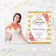 Quinceanera convite de festas com sua foto. Apresenta faixas, fontes de script, rosas rosa-pinceladas, tiara e confetti. Design cor-de-rosa branca e elegante com ouro brilhante falso. Perfeito para uma celebração elegante.