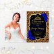 Quinceanera convite de festas com sua foto. Possui impressão de gueparda leopardo, fonte de script, rosas azuis reais, tiara e confetti. Design de safira branca e preto clássico com ouro brilhante falso. Perfeito para uma celebração elegante.
