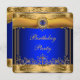Belo ouro rola convite de aniversário azul e ouro. Este elegante convite de aniversário azul real e dourado é facilmente personalizado para o seu evento simplesmente adicionando detalhes do seu evento, estilo de fonte, tamanho de fonte e cor e texto. Observe que todos os adesivos, cartões e designs de convite que você encontrará no Zazzle são gráficos impressos sem joias reais, arcos, levantados, gravados, ou peças ou peças adicionadas.