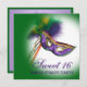 Os sequins roxos Dourados emplumam-se o convite de aniversário roxo do mascarada do doce 16 do verde da máscara do mascarada.