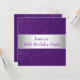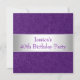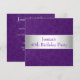 Todos os eventos, celebrações, anúncios e convites de festas de aniversários. Apropriado para todos os aniversários e eventos da idade. Rsvp está disponível em cima do pedido no estilo similar. Na moda bonito fundo roxo gravado do teste padrão de Paisley do metal com guarnições brancas de prata do cetim e texto branco. Mude o estilo e o tamanho do texto com personaliza.
