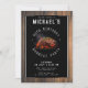 Convite de festas de Churrasco de Aniversário 90 Russo. Entre na perfeita mistura de encanto rústico e sofisticação moderna com o nosso design de convite de aniversário. Mergulhe no calor de um pano de fundo de madeira, acoplado a sotaques negros elegantes para um toque contemporâneo. O convite dá o tom a um churrasco inesquecível, onde a saudade nostálgica da estética rústica encontra a ousadia da design moderna. Junte-se a nós enquanto celebramos sob as estrelas, cercadas pelo conforto das texturas de madeira e pelas delícias de tamanho de um banquete de churrasco. Este convite promete não apenas um evento, mas uma experiência em que o encanto rústico do eterno e o talento moderno convergem para uma celebração verdadeiramente memorável.