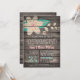 Convite de festas para uso doméstico com flores azuis cor-de-rosa e turquesa, design floral no campo de colheita rústica ocidental, madeira de celeiro, fundo estampado de madeira com fontes elegantes e à moda antiga. Perfeito para o país, fazenda, fazenda, tema de caserna Festas de Aquecimento Doméstico! Este convite giro e divertido é o excelente ano redondo para primavera, verão, outono ou nova casa de inverno, celebração da casa!