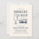 Convites de festas casuais de "hambúrgueres e cervejas" para aquecimento doméstico apresentam ilustrações de estilo rústico e um xadrez de apoio. Perfeito para eventos no verão ou no exterior, esses convites casuais de chic são facilmente personalizados com seus detalhes de celebração.