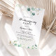 Este convite de festas floral de caligrafia floral de ouro é perfeito para uma simples nova celebração caseira. Este design artístico apresenta folhagem verde de ouro desenhado à mão e cor d'água eucalipto, inspiradora beleza natural.