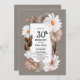 Celebre seu aniversário de 30 anos e convide seus amigos e entes queridos para a sua celebração de aniversário com este convite de festas floral de aniversário de 30 anos de outono com uma fronteira de cinza com petúnias e margaridas brancas.
