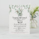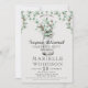Convite de festas de aposentadoria surpresa do eucalipto botânico do jardim russo. Eucalipto e camada de algodão em um fundo de textura creme de linho. Tipo de face aberta elegante contrastado com uma tipografia de script de estilo floral.