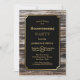 Um ouro rústico bordava convite de festas de casa de madeira com texto dourado em fundo preto.
