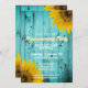Os convites rústicos do housewarming da cerceta do aqua do barnwood e dos girassóis resistiram, afligiram as pranchas de madeira do celeiro da cerceta ou descoraram-nas para fora, fundo da madeira da praia. Os girassóis amarelos enormes simples decoram oposto aos cantos superiores e mais baixos. Lê "juntam-se por favor nos para um partido do Housewarming" no branco com harmonização profundamente - da sombra amarela. Uma beira elegante do rolo separa a introdução dos detalhes do partido. A parte traseira tem a turquesa de harmonização do aqua, fundo de madeira rústico com as flores do amarelo do país. Nota: Todas as imagens são imprimidas. Use a personalização ele botão para mudar qualquer coisa - estilos de pia batismal, tamanhos, cores, ou colocação. O país rústico bonito floral convida para a cerceta e cores amarelas do partido, temas rústicos, partidos do housewarming do país, housewarming exterior ou celebração do housewarming no Outono do outono. Nós temos a decoração floral de madeira de harmonização da cerceta em nossa loja de Zazzle.com/angela65. Bonito, convites florais chiques do país prontos para ser personalizado com seus próprios detalhes.