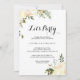 Este simples e elegante convite de celebração de vamos botânico floral é perfeito para uma celebração de noivado de destino. O brilhante design floral apresenta colônias brancas, verdes e baunilha, rosas, beleza e felicidade inspiradoras. Este convite pode ser usado para uma festa de noivado, festa de aposentadoria, chá de fraldas ou qualquer evento!