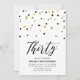 Celebre seu dia especial com este convite de festas mínimo de aniversário de 30 anos. Este design apresenta um script de na moda com letra "Trinta" com um confete em forma de hexágono com uma combinação de cores preto e dourado. Mais designs disponíveis no meu compro BaraBomDesign.