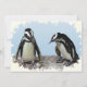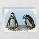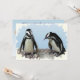 Este convite para uma festa de solstício de inverno apresenta dois adoráveis Pinguins Africanos de pé numa borda rochosa. São aves aquáticas, sem raios, cujas asas se tornaram trepadores. Cada um tem uma faixa preta e manchas pretas no peito. O padrão de manchas é único para cada pinguim, assim como as digitais humanas. Eles têm glândulas cor-de-rosa sobre seus olhos e pés cor-de-rosa e pretos. Todo o texto no verso pode ser personalizado com suas informações pessoais do participante.